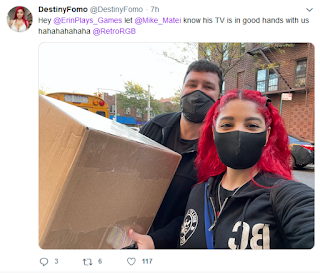 “Hey @ErinPlays_Games let @Mike_Matei know his TV is in good hands with us hahahahahaha @RetroRGB”