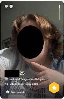 Next profile is a 19 year old, blank profile, and five close up pictures of her face, obviously taken by herself, and they all look identical. We have to “like” her. She put so much work into her profile, after all.